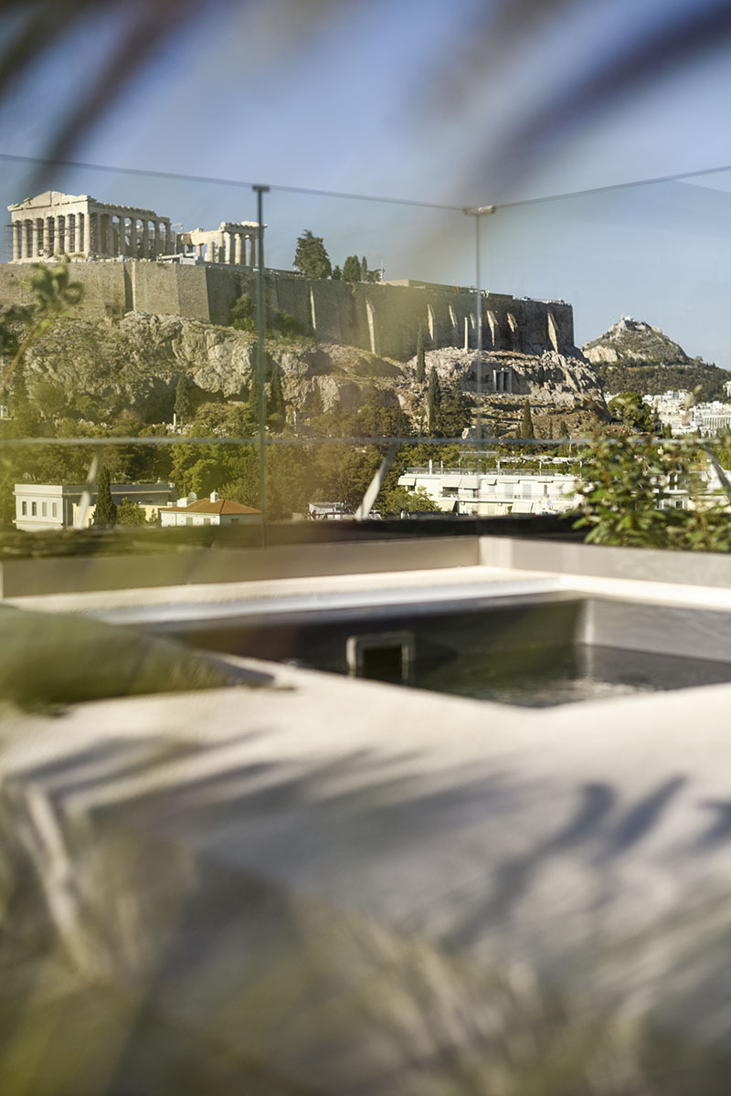 Η νότια βεράντα, που περιβάλλεται από έναν καταπράσινο πέτρινο κήπο, προσφέρει επίσης μια καταπληκτική θέα στο βράχο της Ακρόπολης. Επιπλέον, διαθέτει ένα υπαίθριο τζακούζι στο οποίο οι επισκέπτες μπορούν να χαλαρώσουν, απολαμβάνοντας την υπέροχη θέα που γίνεται το πιο εκπληκτικό και αυθεντικό σκηνικό για τις αθηναϊκές διακοπές σας. Συνοδεύεται από ξαπλώστρες, ώστε οι επισκέπτες να μπορούν να κάνουν ηλιοθεραπεία κατά τη διάρκεια της ημέρας ή να χαλαρώσουν τη νύχτα υπό την αίγλη και τη μαγευτική αύρα του μνημείου ορόσημου της Αθήνας.