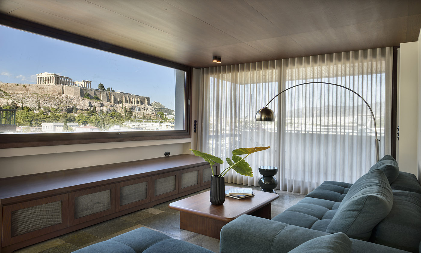 Βεράντα με Θέα Ακρόπολη - Το Karyatis Luxury Maisonette βρίσκεται στη νότια πλευρά της Ακρόπολης, την πιο εντυπωσιακή από όλες τις προσόψεις, με το θέατρο του Ωδείου Ηρώδου του Αττικού στους πρόποδες. H απόλυτα προνομιακή τοποθεσία του Karyatis Luxury Maisonette, καθώς και o πρότυπος σχεδιασμός της προσφέρουν το μοναδικό πλεονέκτημα μιας αξεπέραστης θέας στο πιο επιβλητικό σημείο της πόλης. Οι δύο βεράντες σε κάθε πλευρά του loft με θέα την Ακρόπολη είναι μέρος της αδιαμφισβήτητης υπεροχής του Karyatis Luxury Maisonette.
